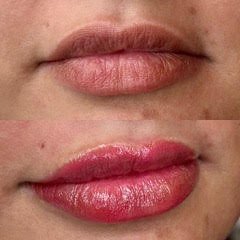 Lip Blushing is a semi-permanent cosmetic treatment that gives a light wash of color to the lips. The results are very different from the hard, solid look of lip tattooing done in the past. Once healed, you can expect a look similar to that of a lip stain. There are options to have more of a lipstick look to the lip blush, as well as options for natural lip color correction. Not only does this tint lips with color, but it also makes them appear fuller and more defined.